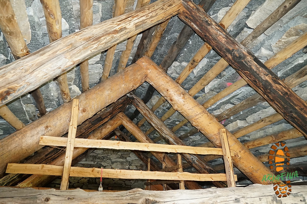 Il restauro conservativo ha toccato principalmente il tetto in piode, mentre l’interno risulta piuttosto spartano, come doveva apparire ai tempi in cui si viveva sull’alpe. Di fianco al focolare, infissa nel muro, osserviamo con interesse una spersola (un tavolo inclinato e scanalato) in pietra, utilizzata durante la produzione del formaggio per agevolare la fuoriuscita del siero dalla cagliata posata nello stampo.