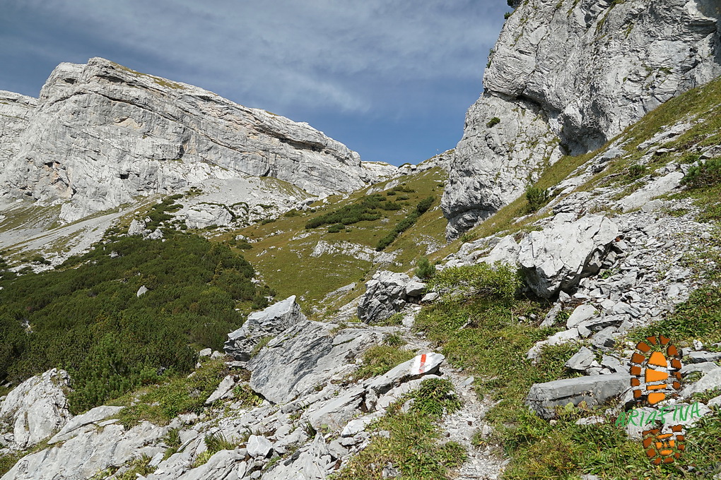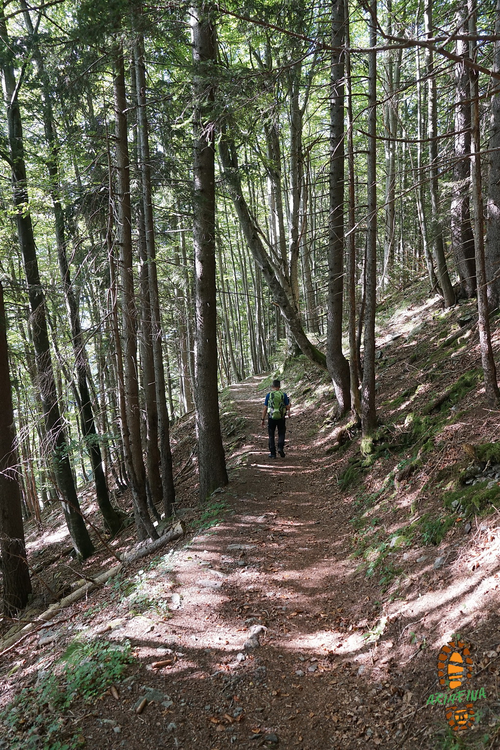 Il tracciato è segnalato, evidente e privo di difficoltà, se però da quota 1’234m si utilizza la scorciatoia che attraversa la Plattental, in quel breve tratto si incontrano due passaggi su rocce bagnate attrezzati con cordine, un aiuto fondamentale per riuscire a passare.