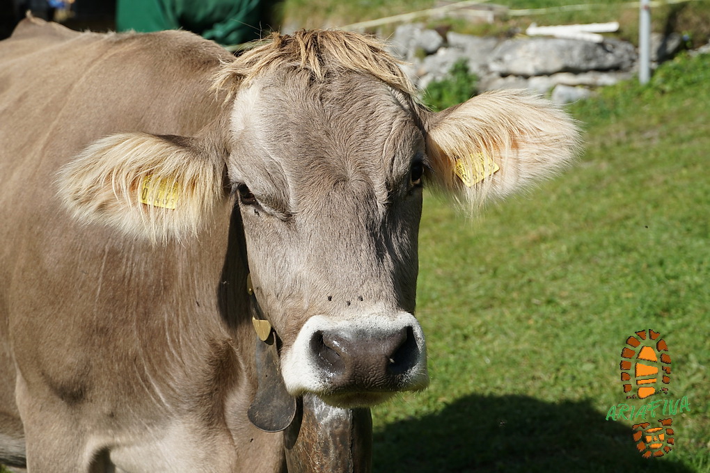 Altra difficoltà, soprattutto se non si padroneggia il tedesco, sta nel capire come funziona il business. La stazione non è presidiata, a valle non c’è nessuno. Leggendo le istruzioni e con un po’di fantasia capiamo che c’è da schiacciare un pulsantone arancione (di quelli da film catastrofici per intenderci, che se lo schiacci potrebbe esplodere l’intero pianeta!), rispondere al vicino telefono quando squilla, comunicare il numero di passeggeri, salire sulla cabina, chiudere la porta e attendere che questa si metta in moto. L’impianto è gestito dai signori che stanno sull’alpe e arrivati a monte incontriamo finalmente la manovratrice alla quale paghiamo il biglietto.
