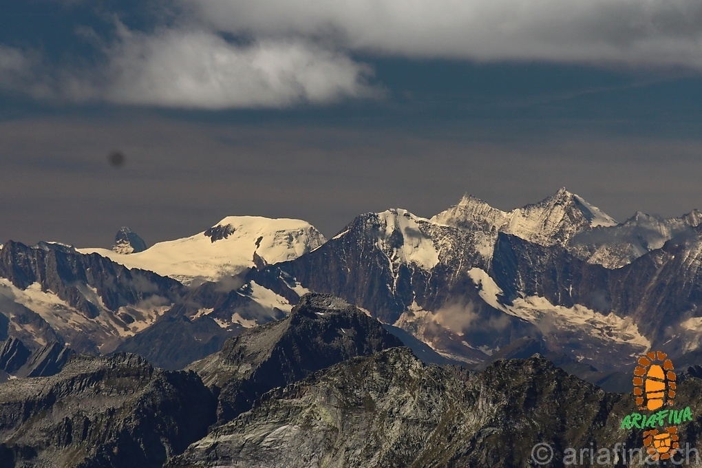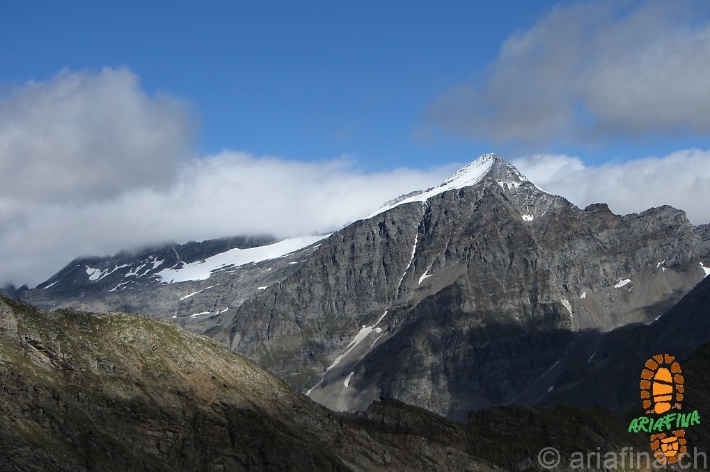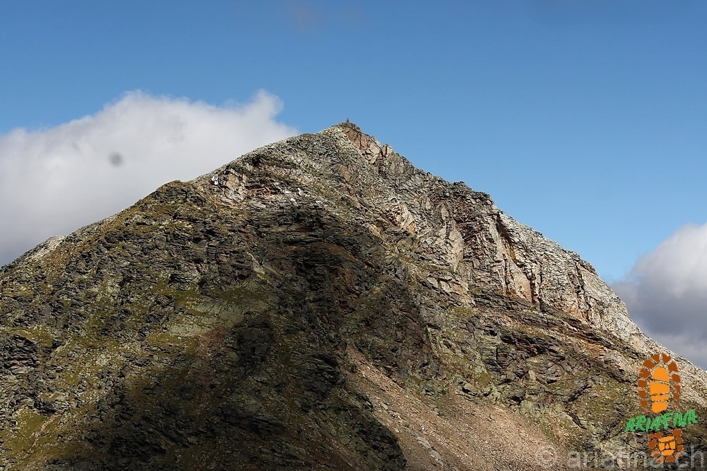 La meteo, stupenda per quasi tutta la mattina, s’è ovviamente guastata nell’ultima mezz’ora e arrivati in vetta dobbiamo fare i conti con l’ormai solita nuvoletta fantozziana che ci perseguita da quasi tutta l’estate! Il panorama è comunque fantastico e anche stavolta le foto non si contano, bellissimo!