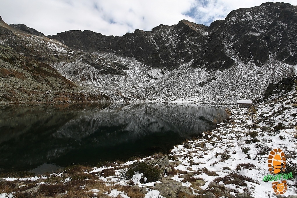 Mentre siamo sulla cima osserviamo la zona di Mognola e ci viene il dubbio che in questo periodo nella conca che ospita il lago non arrivi più il sole, inoltre le nuvole si stanno spingendo più a sud del previsto rovinandoci un po’il panorama!