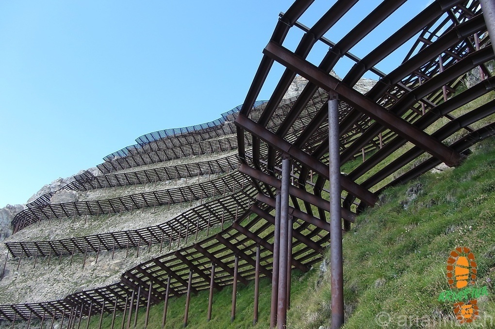 La complicazione maggiore è quella di passare attraverso gli ingombranti ripari valangari di metallo che si incontrano salendo alla vetta, bisogna proprio issarsi (e calarsi al ritorno) di peso attraverso le aperture.