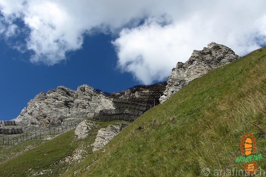 L’Erié (1850 m) – quota 2000 m – quota 2051 m – ripari valangari – Chavalard Dessus – quota 2619 m – Dent de Fully (2778 m) – Grand Chavalard (2899 m).