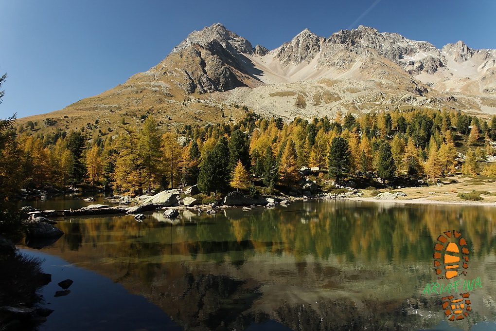 L’escursione è semplice (T2) e si sviluppa su sentieri larghi e ben segnalati, la zona è turistica e molto frequentata. Spingendosi, come abbiamo fatto noi, fino al Pass da Val Viola sul confine con l’Italia si possono ammirare una decina di specchi d’acqua. Alcuni laghetti non portano nome come ad esempio quelli situati nei pressi del confine di Stato, altri sono piccolissimi come il Lagh dal Dügüral in Val Viola ed il Lagh da Scispadus, poi ci sono quelli dalle notevoli dimensioni vale a dire il Lagh da Val Viola ed il Lagh da Saoseo, entrambi immersi in boschi di larici che in questo periodo sfoggiano colori da favola. Questi due e l’ultimo in particolare sono i laghi che ci hanno attratto maggiormente prendendoci parecchio tempo per le foto e per la semplice contemplazione di quelle acque dai colori sgargianti dal verde al turchese e generose di riflessi…S P E T T A C O L O!