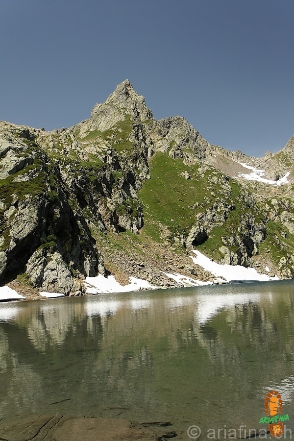 Visto che ci siam saliti l’anno scorso posso citare con soddisfazione anche il Pizzo Forno tra Val Piumogna e Val Chironico. Sopra il lago fa bella mostra di sè l’imponente Pizzo Campolungo. Infine a dominare i panorami in lontananza non poteva che esserci lei…l’Adula…chiaro che si!