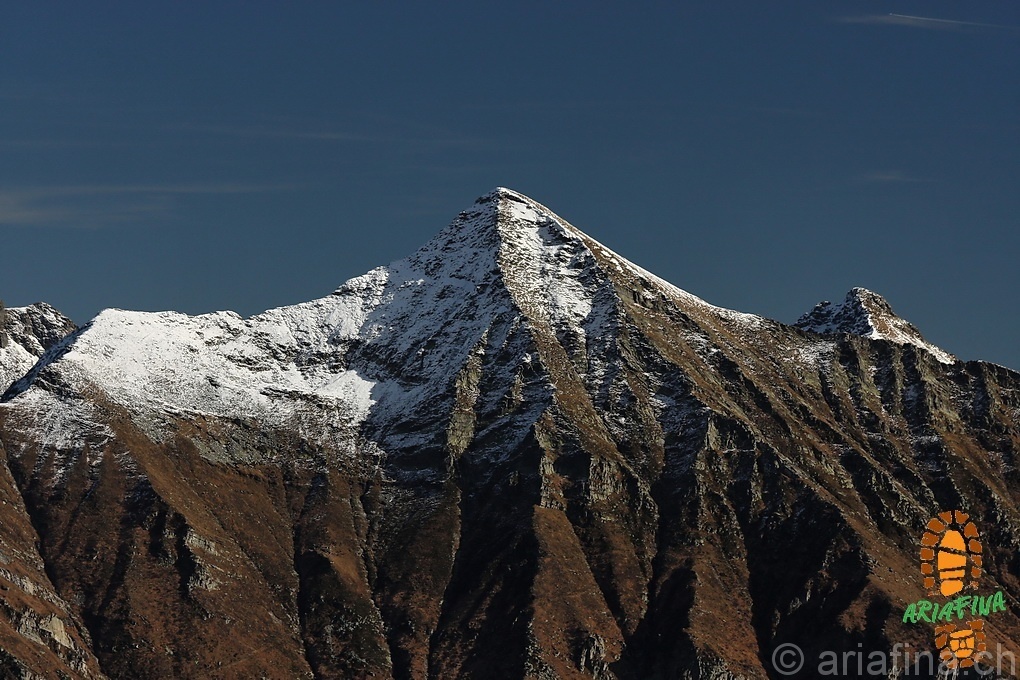 Per quanto riguarda il panorama offerto dal Madone posso dire che è senz’altro spettacolare. La vista spazia sulle cime valmaggesi e verzaschesi, si sbava parecchio ammirando la piramide del Poncione d’Alnasca, quella del Pizzo di Vogorno e la cupola del Poncione Rosso…tanto per citarne alcune. Molto bella anche la cresta che si stacca dal Madone in direzione dei vicini Pizzo di Corbella e Pizzo d’Orgnana.