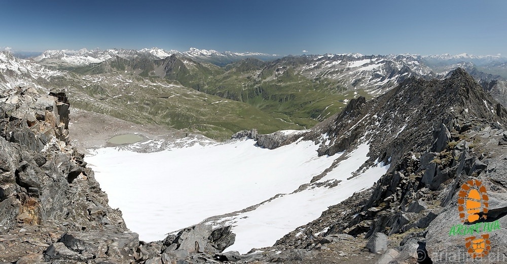 Sotto la parete a sud- est del Pizzo Centrale invece scende la bella, ma breve, lingua di ghiaccio del Ober Schatzfirn.