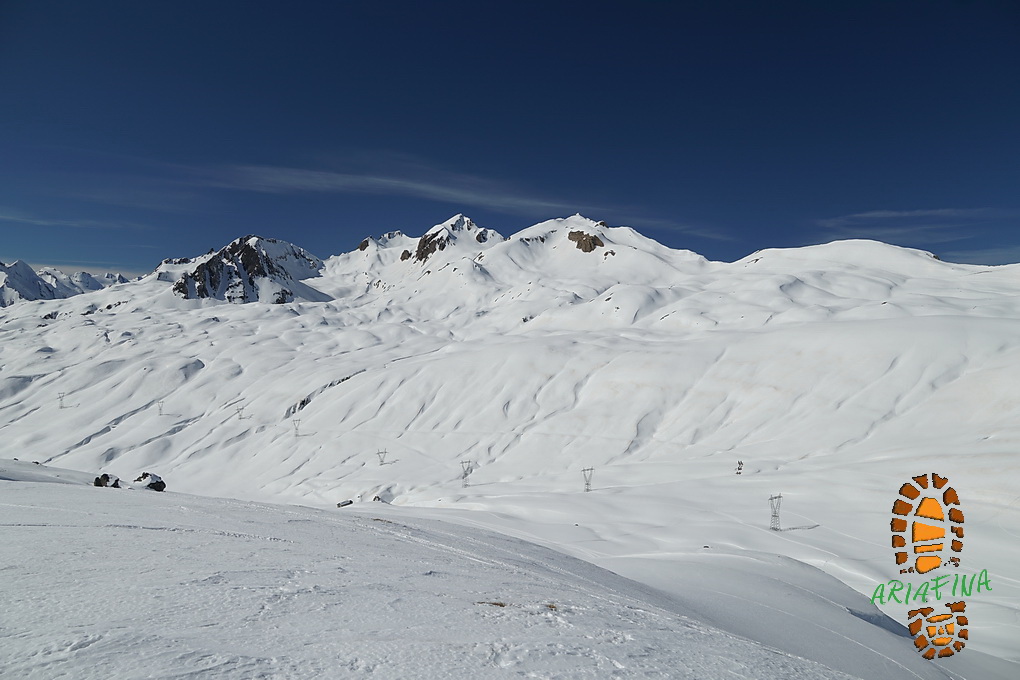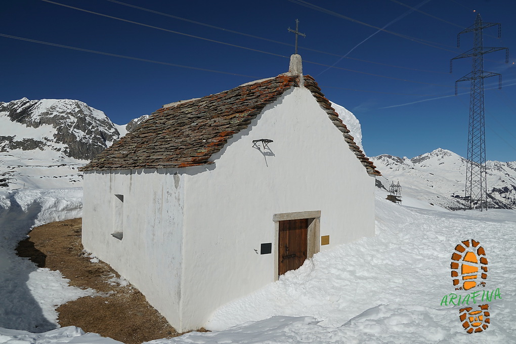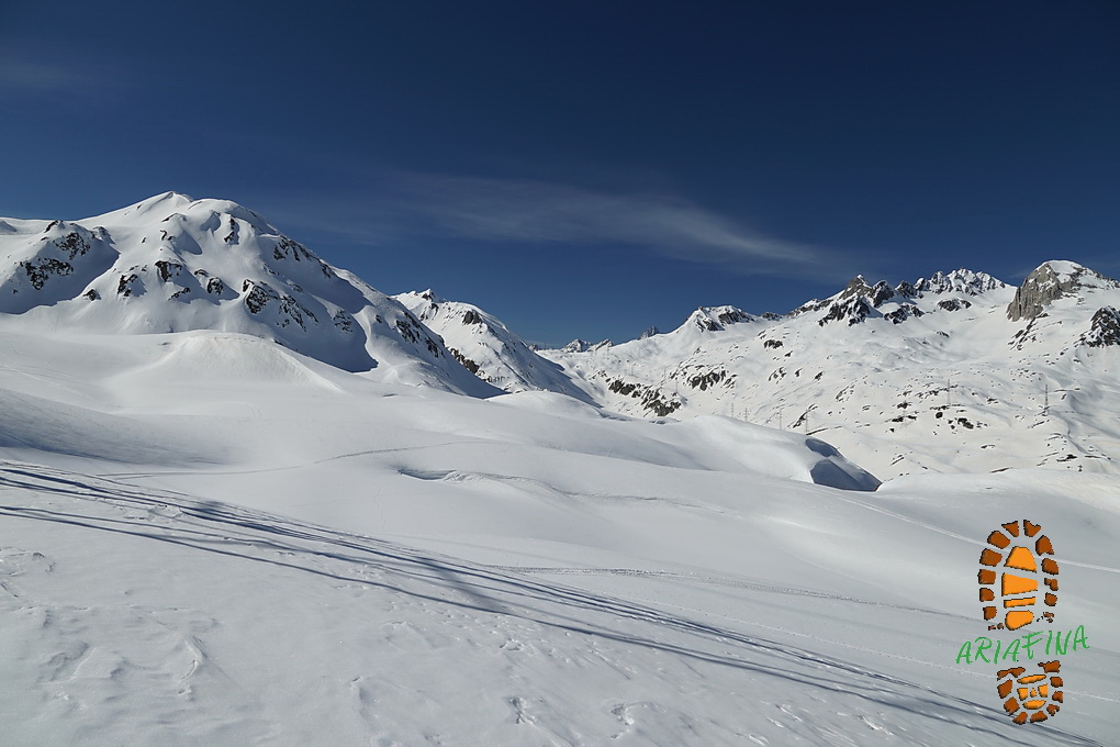 Il sentiero per San Giacomo non è ufficialmente segnalato per l’inverno, ma la Val Bedretto di questi periodi è presa d’assalto da centinaia e centinaia di persone, di conseguenza a terra vi sono già numerose tracce. Per localizzare la zona del Passo si può anche tenere come riferimento il grande pilone della linea elettrica che si alza in alto a sinistra.