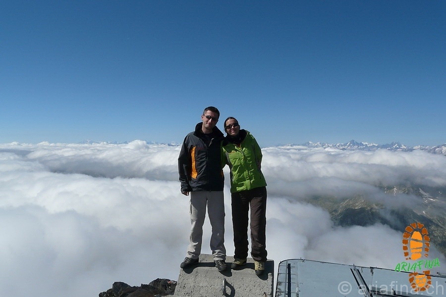 Sulla cima ci aspettavamo di pelare dal freddo a causa del forte vento e invece non ce n’era e faceva più caldo lassù che al Passo del Lucomagno!