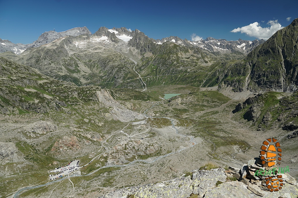 Dopo aver dormito nella Meiental risaliamo di nuovo il Sustenpass e dal Canton Uri ci spostiamo velocemente nel Canton Berna. Al curvone di quota 1’863m dove sorge l’Hotel Steingletscher imbocchiamo la strada privata a pedaggio (CHF 5.-/giorno), saldiamo il dovuto alla macchinetta automatica e continuiamo fino al grande parcheggio di Umpol.